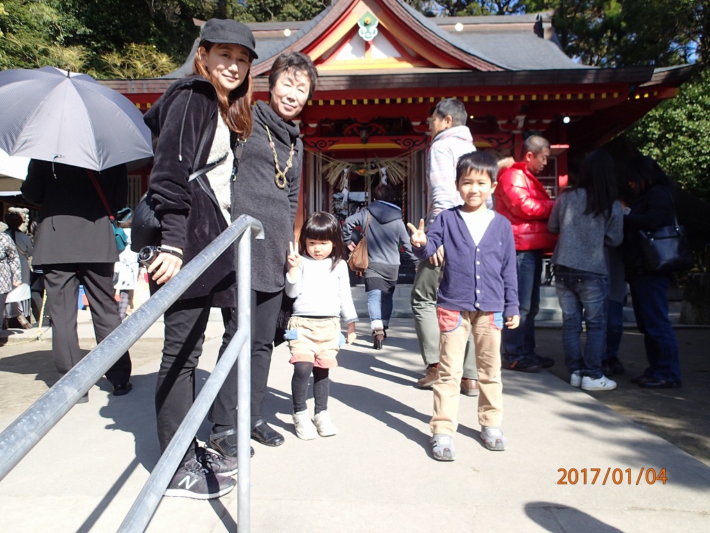 玲香と孫を連れて、指宿に「三社参り」に行った。僕にとって枚聞神社の他は初めてだ。それぞれ面白い謂れがあり興味深く、また正月なので賑わっていた。三社を参ってから、唐船狭にある「そうめん流し」に行き昼食。そして、先日職場のOBと泊まった国民休暇村に行く。また、砂蒸し温泉に入った。
