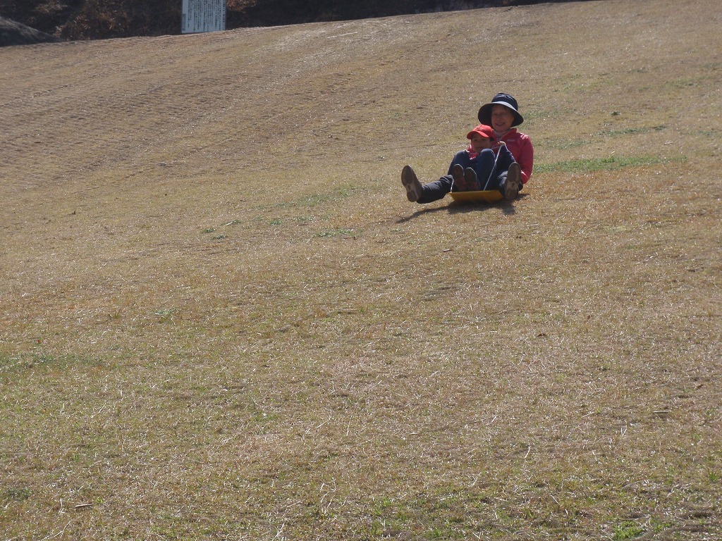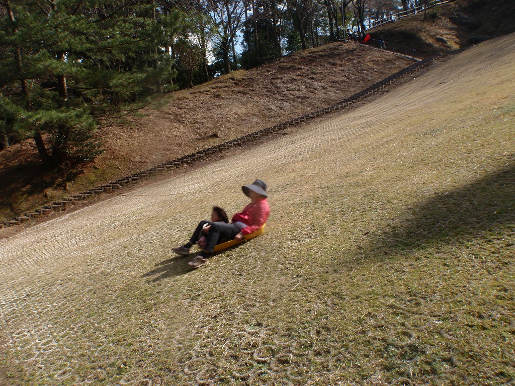 八重山公園では、「長いスベリ台」や「草スキー」や「アスレチィク」などで遊んだ。天気がよく多くの人が来ていた。市営なのですべて無料である。