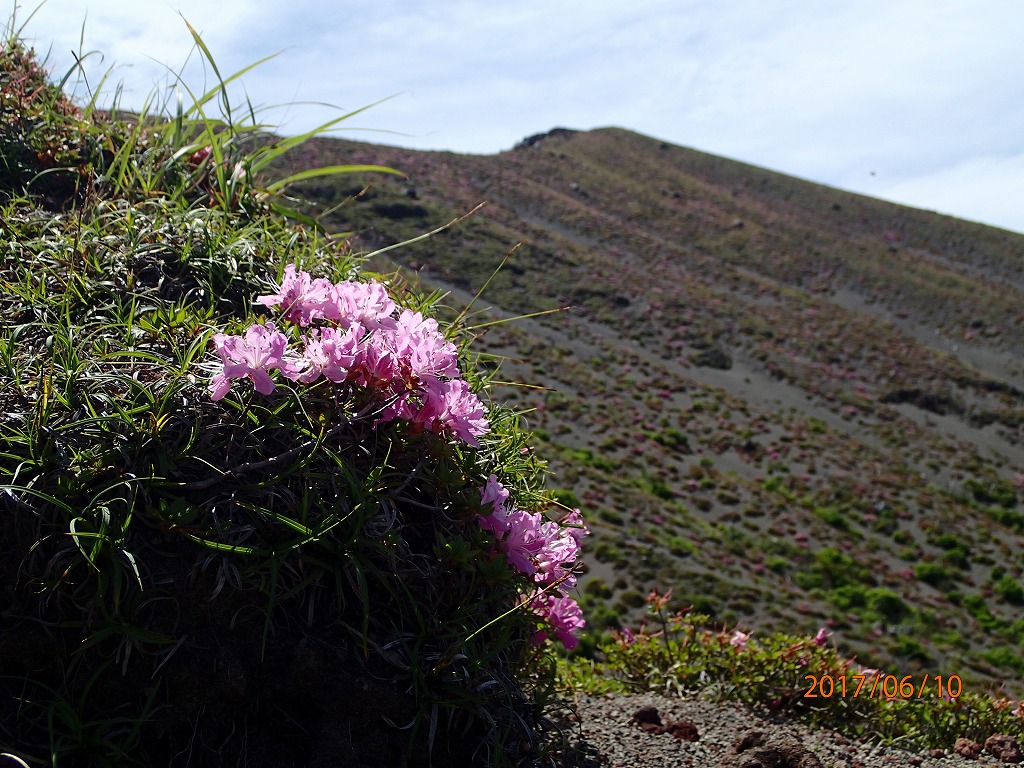 美佐子と彼女の友達2人と高千穂河原に行く。ここから美佐子等はここで合流したUさんと矢岳・竜王に登りヤマツツジを見に行く。僕は一人で高千穂の御鉢に登り、ミヤマキリシマを見学した。
