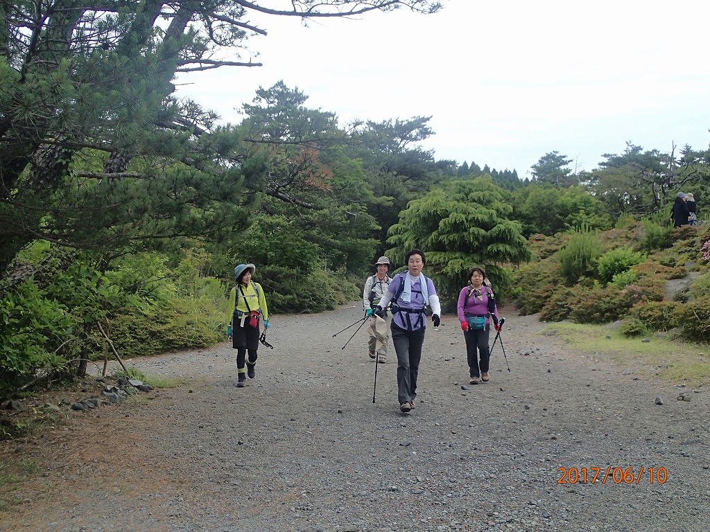 美佐子とIさんMさんと4人で霧島にいく。大浪の池の登山口から登り始めてたが雨が降り出したので、引き返す。そこで、高千穂河原に行き鹿ケ原を散策することにした。小雨になったので駐車場の近くで弁当を食べ始めると、ちょうどUさんが高千穂から降りてきていたので、一緒に弁当をたべる。