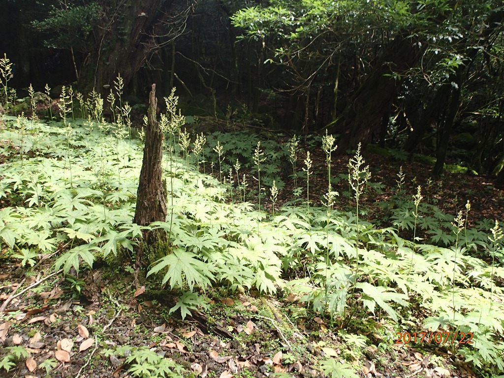 昼の食事は大幡前山(塾長の命名)でした。食後みんなは大幡山に向かったが、僕はここに一人で残り約1時間ほど昼寝をして休憩した。裏霧島の静かな夏の深山で一人でヒグラシのセミの音を聞きながらウトウトしていると、やがて行くことになるあの世が身近に感じてきた。