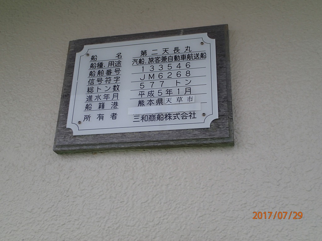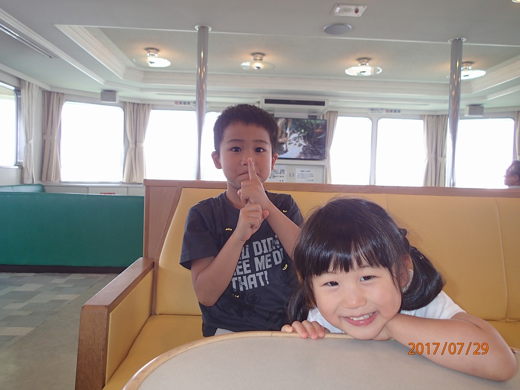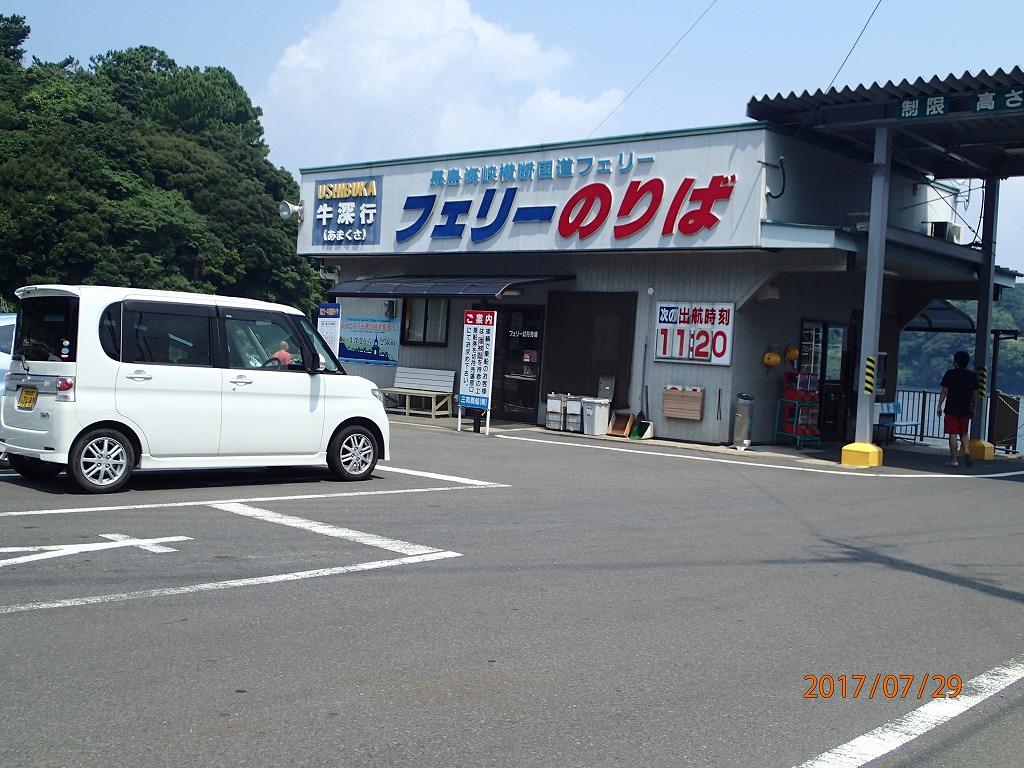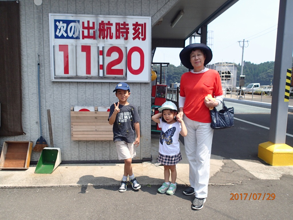 玲香家族と土曜日の朝に鹿児島を車で出発。長島・蔵之元港に行き、11時20分発のフェリーに乗り30分ほどで天草・牛深港に着く。海は穏やかで近くに島が見えて景色がよい。
