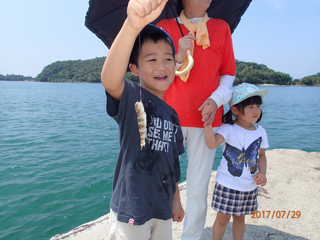 今年の夏の家族旅行は天草にした。昨年は霧島に行き、渓流の釣り堀でマス釣りをしたが、今年はこの前の天草旅行が良かったので、また天草に行き、今回は子供が釣りが好きなので海釣りに挑戦した。
