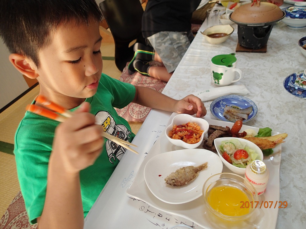 釣果の大物賞はナミちゃん、2番はマー君だった。釣った魚はホテルが唐揚げにしてくれて、夕食の料理として頂いた。やはりプロだ料理が上手だ。