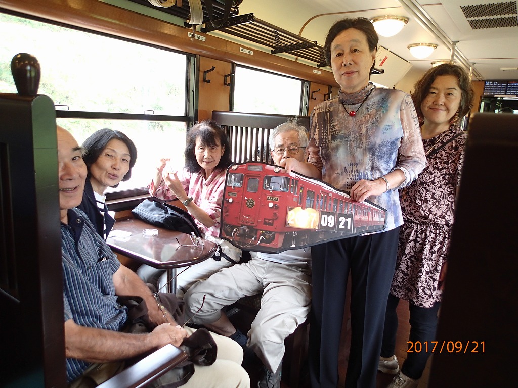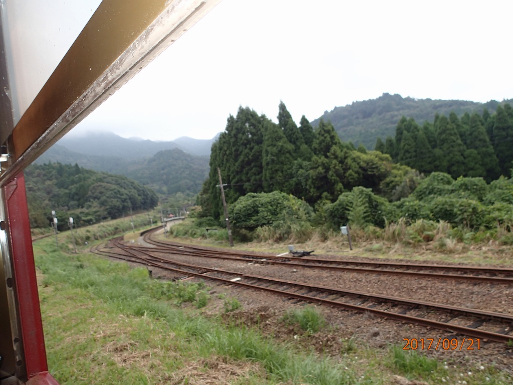 新幹線で大阪に帰る谷林夫妻とは人吉駅で別れた。我々は来たのと同じ列車と路線で帰る。今日はよく晴れていたので車窓からの風景は素晴らしかった。