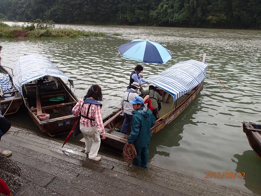 宿に荷物を預けて、歩いて船着き場まで行き、「球磨川下り」の舟に乗る。