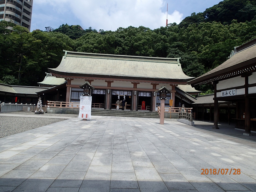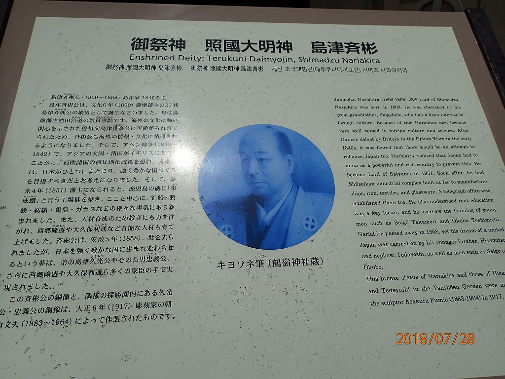 公園の隣にある照国神社に案内した。(ここの駐車場に僕の車を駐車。)