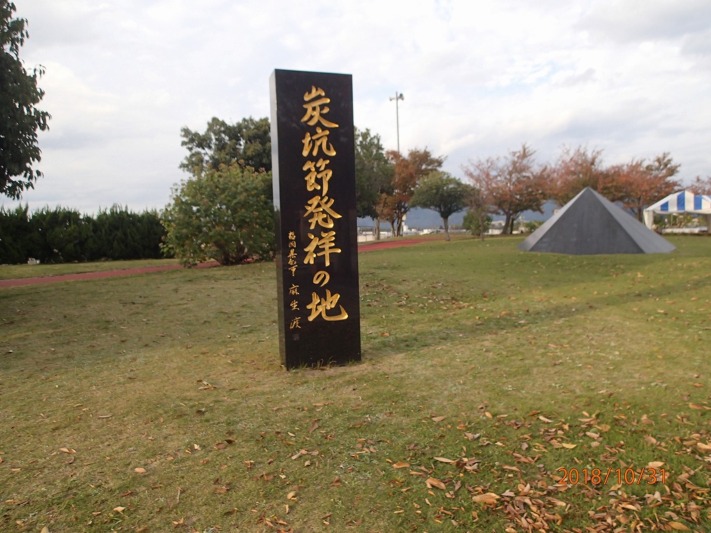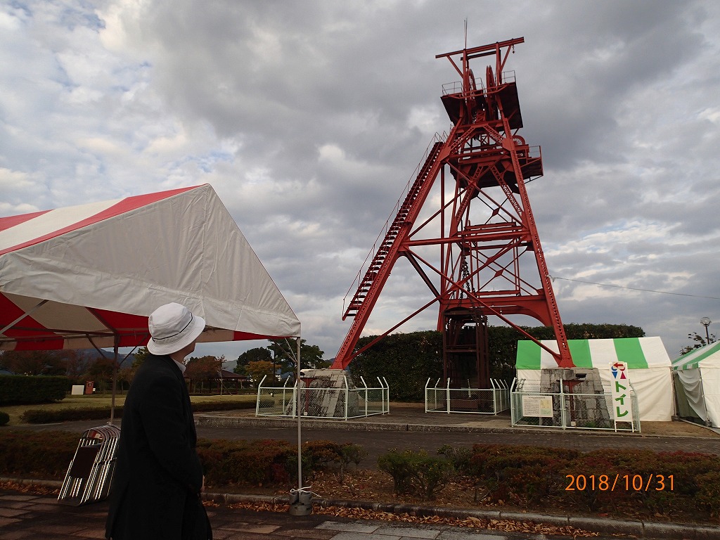 石崎さんに案内されて田川の炭鉱遺跡を見学した。ここは、炭坑節で有名である。毎年、炭坑節の祭りをしているそうで、その準備をしていた。