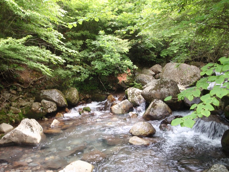 内山リーダーの「小谷川上流遡行」に参加しました。T さんと同じく私も今年なって初めての沢登です。この沢はリーダーのホームグラウンドのような沢だそうで途中に山之城温泉があります。今回はこの温泉の上流を遡行しました。小谷川には、これまで何度もリーダーに連れていって貰っています。温泉の勢いは年によって変化していて、昨年は非常に活発だったように記憶しています。今年は普通のようでした。