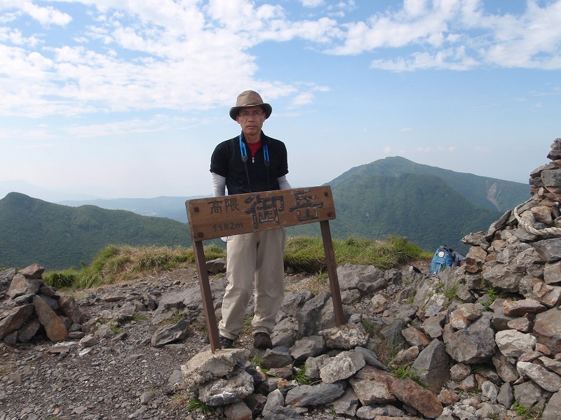 大雨警報がでているなか、高速道路で空港まで行きましたが、実はそこから「えびの」までは雨で通行止めでした。濃霧のなか林田のバス・ターミナルのところまでやっと行き着きそこから電話をしたら皆さんは登山口に着いたところとのことでしたので、またひどい濃霧のなかを走り無事に大浪池登山口に着き皆さんと合流。