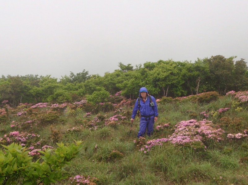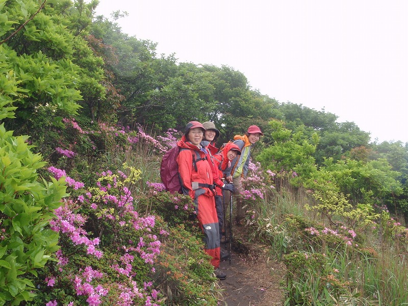 あいにくの天気で予定の「韓国北峰〜大浪の池〜えびの高原(周回)」は変更になりましたが、ミヤマキリシマの群生や池の岸壁にあるオオヤマレンゲの花をゆっくりと鑑賞できました。韓国の頂上付近は雲の中にあり、恐らく強風が吹いていたと思われます。我々は土砂降りに遭わずにすみ幸いでした。